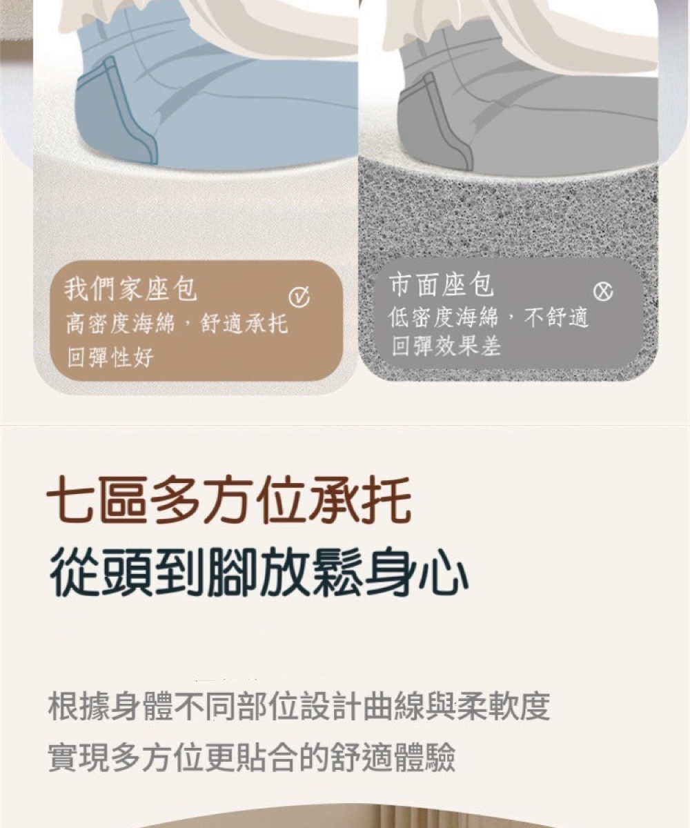 5.人體工學:七區承托設計,從頭到腳完美貼合。