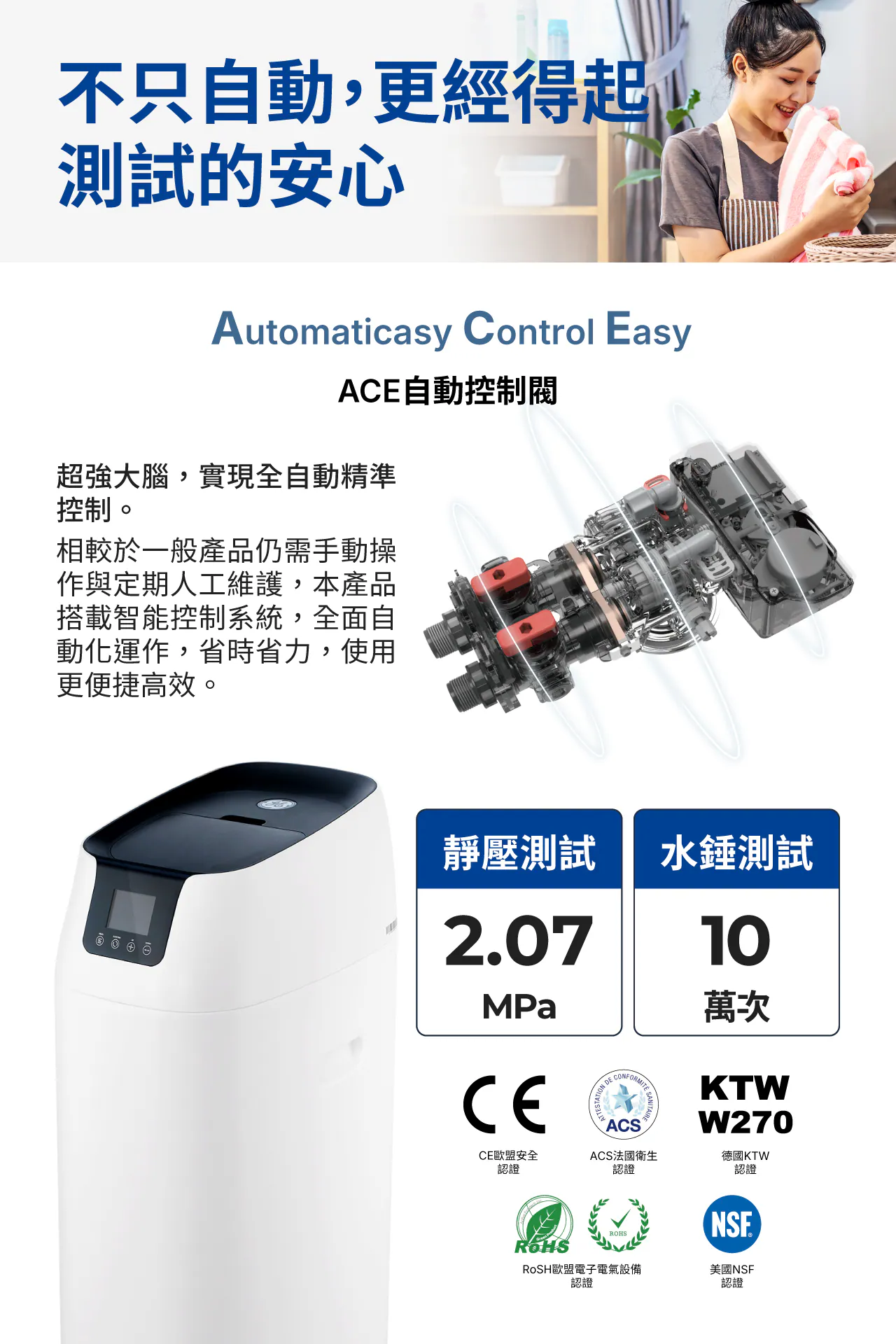 7.全機保固一年,核心保固10年。8.智慧在生技術:省水、省鹽、省心